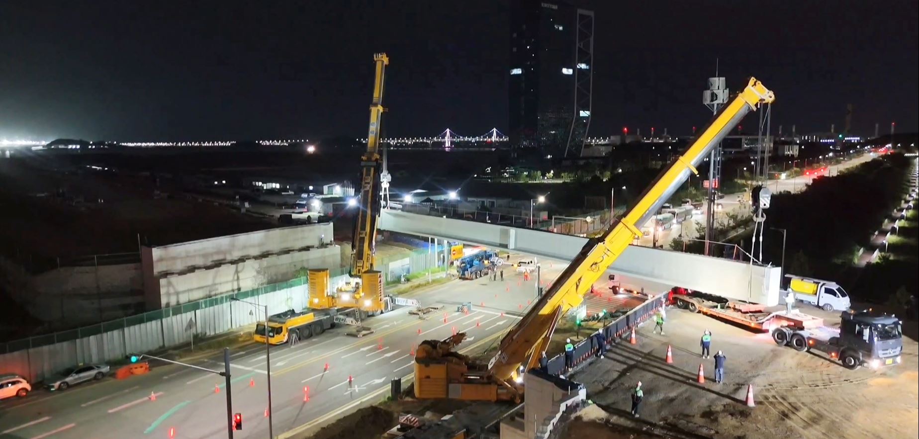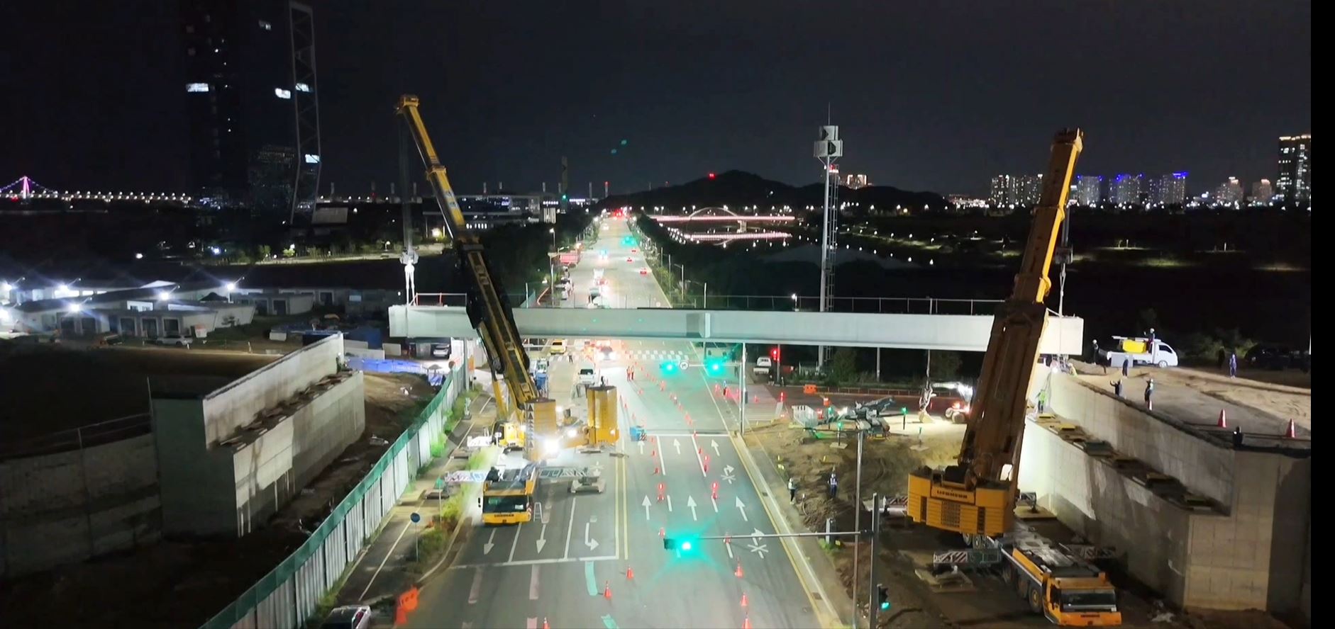 인천청라동 교량빔 가설 작업입니다